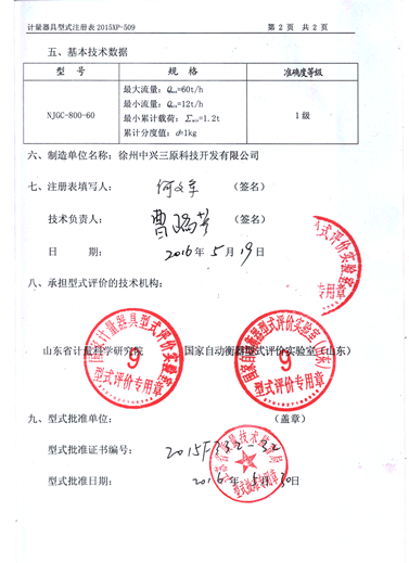 產(chǎn)品鑒定證書(給煤機(jī)型式評(píng)價(jià)報(bào)告) |