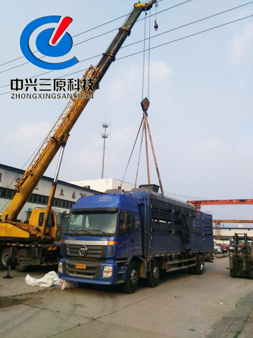 稱(chēng)重給煤機(jī)主體全部吊裝上車(chē)
