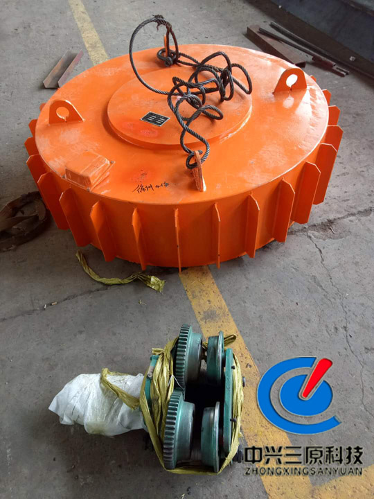安徽客戶輸煤段配套一臺(tái)電磁除鐵器 適應(yīng)皮帶寬度:B=1400mm、 磁場(chǎng)強(qiáng)度:≥70mT 額定吊高:400mm 技術(shù)特點(diǎn): 1、磁路采用計(jì)算機(jī)模擬設(shè)計(jì),透磁深度大,磁力強(qiáng)。 2、內(nèi)部采用電工專用樹脂澆注,自冷式全密封結(jié)構(gòu),防塵,防雨,防腐蝕。 3、可有效吸除混雜再非磁性物料中0.1-50KG的鐵磁性物質(zhì)。